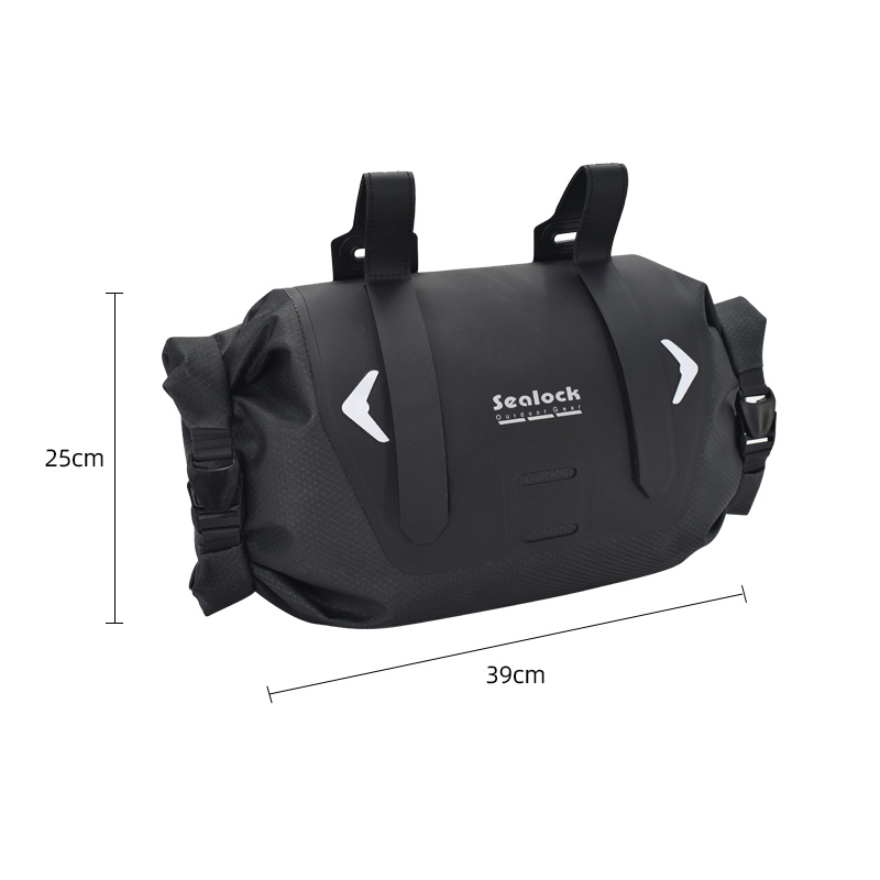 Spetsiaalne kuju ja täiustatud rihmad Meie Sealock Bike juhtraua koti veekindel jalgratta esikott Mountain Roadile kasutab ainulaadset kahepoolset kokkupandavat disaini, mis on nii ilus kui ka praktiline. Sisemisel PU-padjal on tugev löögikindlus ja see võib kaitsta esemeid, nagu telefonid ja rahakotid, juhusliku kukkumise korral. Uuendatud rihmad on palju paremad kui varem. Need on mõeldud läbipaindeprobleemide lahendamiseks ja koti asendi säilitamiseks rattasõidu ajal.